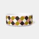 This is a heavy, durable bowl decorated with Tibbies of many colors, the perfect size for hungry/thirsty Tibs. The design is interesting and printing clear.