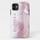This elegant pink and white watercolor pattern with gold faux glitter design looks stunning on this iPhone 11 case, ready for you to personalize with your name. This stylish phone case would also make a great gift for a friend or loved one.