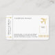 Elegant gold airplane ticket boarding pass place card or escort card with lots of room for custom messages and shuttle or taxi information, a perfect addition to a destination wedding or aviation travel theme reception for the globetrotter couple having a wedding abroad.