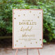 This gold polka dots bridal shower welcome poster is perfect for an elegant wedding shower. The simple design features chic gold confetti on a creamy champagne background with beautiful faux gold foil calligraphy. Customize the poster with the name of the bride-to-be, and the date and location of the bridal shower.