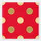 Gold polka dots in a seamless pattern on a red background.