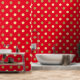 Gold polka dots pattern on red wallpaper