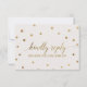 This gold polka dots wedding website RSVP card is perfect for an elegant wedding. The simple design features chic gold confetti on a creamy champagne background with beautiful faux gold foil calligraphy. Personalize the online response card with your RSVP by date and wedding website address. If your guests do not need a website password, you can replace the text with a short and sweet message for your guests or an alternative RSVP method.