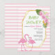 Gold polygon, pink flamingos baby shower invitation