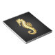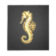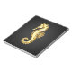 Artistic, polygonal, seahorse of sparkling, gold foil on black background.