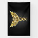 Gold polygonal Caduceus symbols on black isolated background. Low poly symbol of medicine.