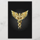 Gold polygonal Caduceus symbols on black isolated background. Low poly symbol of medicine.