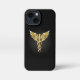 Gold polygonal Caduceus symbols on black isolated background. Low poly symbol of medicine.