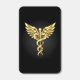 Gold polygonal Caduceus symbols on black isolated background. Low poly symbol of medicine.