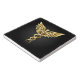 Gold polygonal Caduceus symbols on black isolated background. Low poly symbol of medicine.