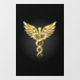 Gold polygonal Caduceus symbols on black isolated background. Low poly symbol of medicine.