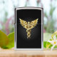 Gold polygonal Caduceus symbols on black isolated background. Low poly symbol of medicine.
