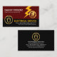 A red and black cover features a yellow lightning powering up a gold home power gauge design. At the upper corner lies your prestigious name and a slogan caption which you can change. Riding on the black layer is a faux gold power plug logo you can use. Beside the logo is the business name "HANDYMAN SERVICE" and its contact details.
