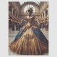 Standing in a vintage grand hall or perhaps a vintage train station, slightly out of place, this Victorian steampunk elegant Gold Princess shines in blue and gold with clockwork gears woven into her elegant fantasy dress with unique tissue paper. This is perfect for crafts like decoupage.