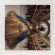 Standing in a vintage grand hall or perhaps a vintage train station, slightly out of place, this Victorian steampunk Gold Princess shines in blue and gold with clockwork gears woven into her elegant fantasy dress with unique puzzle design.