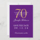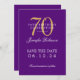 Having your Gold Purple 70th Birthday Save The Date Invitation match the theme of your party is a great detail that your guests will appreciate. The thoughtfulness of a consistent party theme is often appreciated and can show your guests that you can host a cohesive event.