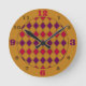 Gold Purple & Coral Harlequin Pattern Round Clock