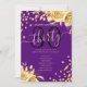 Elegant Glam Gold Purple Floral Glitter 30th Birthday Script template featuring party program and menu text, flower arrangements, glitter confetti and modern typography script.