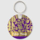 Gold & purple floral damask pattern keychain
