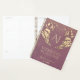 Glamorous, luxury, elegant purple wedding planner book, with abstract gold frame monogram - initials of bride and groom.