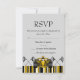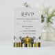 This Modern customizable RSVP features a Gold Race Car on a gray background. Customize it by adding your details in the font of your choice!