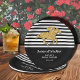 Derby themed bridal shower paper plates - in 2 sizes - feature a racehorse in faux gold glitter on black and white stripes at the top and a solid black area at the bottom for your custom personalization. MATCHING items in our collection.