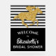 ACRYLIC derby bridal shower welcome sign features a faux gold glitter racehorse on black stripes with your details in chic lettering. MATCHING items in our collection.