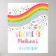 Welcome your party guests with an adorable personalized sign. Frame the sign and display it on a table near the entrance or mount the poster on foam and display it outside on an easel. The design features a colorful rainbow with faux gold glitter accents.