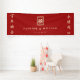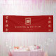 Classic Two Lined Faux Gold Foil Rectangle Double Happiness On Solid Red Background, Chinese Wedding Party Banner.