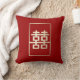 Gold Rectangle Frame Double Happiness Pattern On Red Chinese Wedding Throw Pillow.