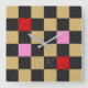 Gold Red Black Pink Glitter Checkered Unique Chic Square Wall Clock