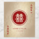 Classic Two Lined Red Circle Round Double Happiness On A Faux Matt Gold Foil Paper Background, Chinese Wedding Party Wine / sparkling wine / Liquor Bottle Label.