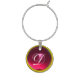 GOLD RED HOT PINK RUBY GEM MONOGRAM WINE GLASS CHARM