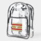 Gold Red White Sports Striped Team Name Clear Backpack. Trendy sport-designed product. Looks good on anything. ⭐PERSONALIZE this template with your artwork. ⭐EDIT it further to make more changes. ⭐TRANSFER this design to any product. Visit all my stores at bit.ly/SandyspiderStores (cut and paste).