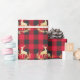 Gold Reindeer Monogram Red Buffalo Plaid Christmas Wrapping Paper