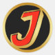 GOLD RETRO MONOGRAM LETTER J CLASSIC ROUND STICKER
