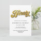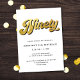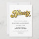 This fun, retro-inspired 90th birthday party invitation features a classic white background with faux gold retro script and simple typography for the invitation text. The script on the front says "Ninety". Customize this design further by adding a photo or additional text to the back simply by using the "design tool".