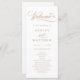 This gold and white wedding ceremony program featuring elegant and romantic swirly calligraphy lettering with your names, wedding date, order of service, and wedding party details. For more advanced customization of this design, please click the BLUE DESIGN TOOL BUTTON above!