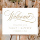 This gold and white wedding welcome sign (foam board) featuring elegant and romantic swirly calligraphy lettering with a formal script. For more advanced customization of this design, please click the BLUE DESIGN TOOL BUTTON above!