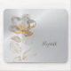 A transparent gold and silver rose on a silver background. Customize it with your name.
