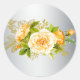 A floral wedding envelope sticker (or party favor or sticker for any other event) featuring a very elegant gold and silver theme: a beautiful bouquet of yellow roses on a glamorous silver background. This decorative sticker would make a great addition to any wedding or important celebration.