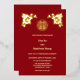 This Chinese wedding invitation features a real gold foil double happiness symbol and rose gold roses on a dark red background. Chinese wedding invitation or tea ceremony invitation.