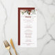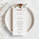 This gold rustic colorful floral dinner menu card is perfect for a simple wedding. The design features hand-painted marsala, pink, blush, burgundy and gold flowers with green leaves arranged into beautiful wreaths.