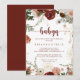 This gold rustic floral BabyQ baby shower barbecue invitation is perfect for a simple couples baby shower or baby sprinkle. The design features hand-painted marsala, pink, blush, burgundy and gold flowers with green leaves arranged into beautiful wreaths.