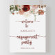 This gold rustic floral engagement party welcome poster is perfect for a modern engagement celebration. The design features hand-painted marsala, pink, blush, burgundy and gold flowers with green leaves arranged into beautiful wreaths.
