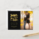 Black and faux gold foil modern photo save the date postcard with cute bold script typography. Elke Clarke ©
