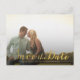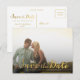 Gorgeous faux gold foil typography on the front of this designer postcard which you can upload into with your own engagement/save the date photo portrait. Easily and quickly personalize this designer professionally printed save the date postcard here and now by just typing over the example text and adding your own photograph. Elegant, chic, simple and classy gold script/cursive typography