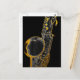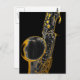 Beautiful saxophone in black-and-white with gold highlights, on a black background.