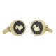 A shiny gold silhouette Scottish Terrier is the feature on these beautiful cuff links. The image is placed on a dramatic black background. Classy!