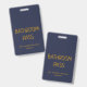 Gold Script Navy Blue Simple Minimalist Back To School Bathroom Hall Pass Badge. Easy to customize. Get yours today!